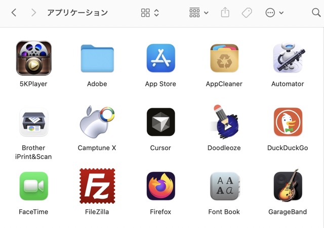 ・Finderからアプリフォルダを開く